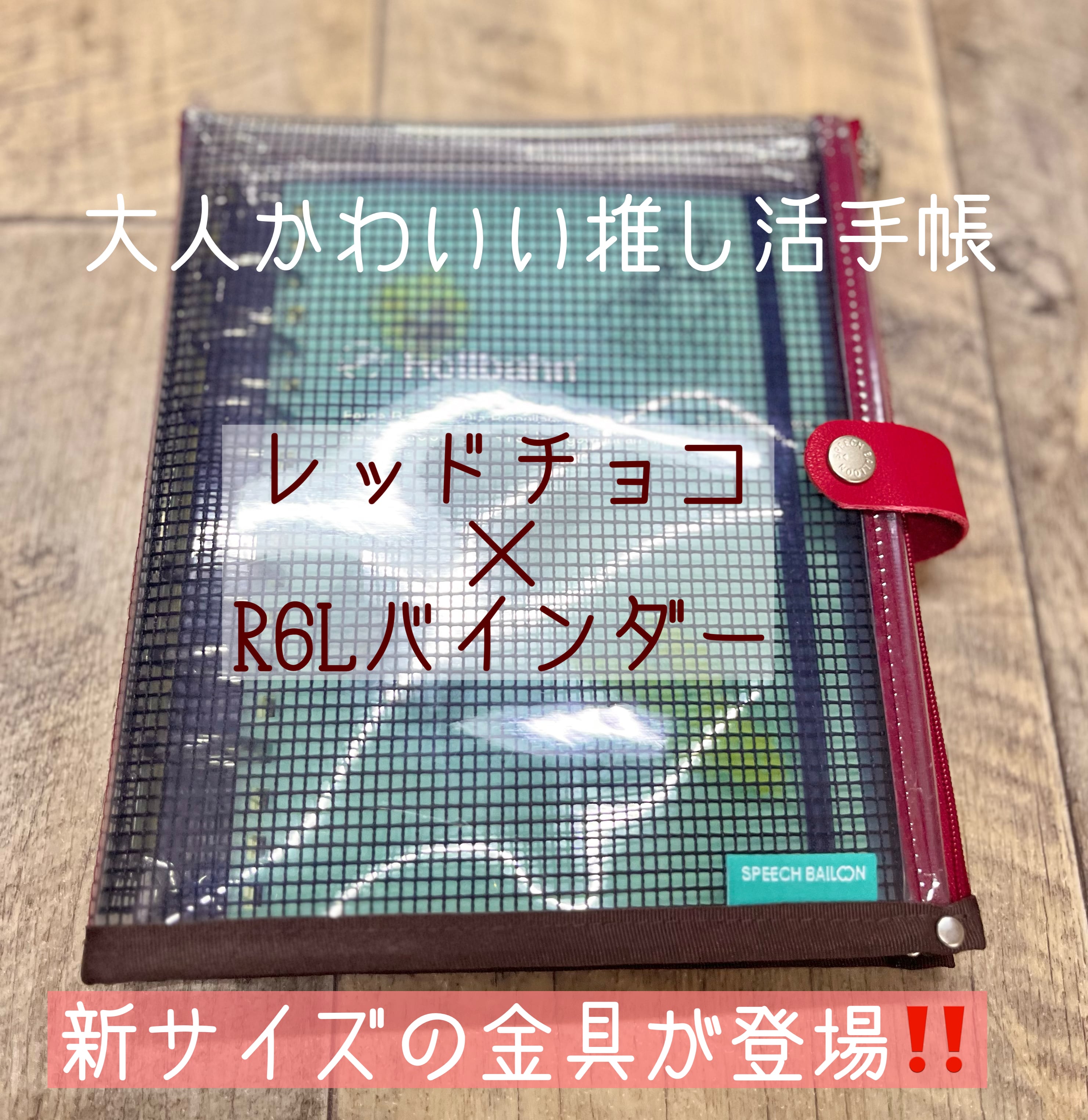 【推し活や文具管理にぴったり】 B6ノート対応・透明手帳カバー(M6Lサイズ/ミニ6穴バインダー付き) 文具好きさん、推し活を楽しむ皆さんへ。 \ 大人かわいい“チョコレートトーン”の新色が登場! / レッドチョコは、ほんのり赤みを感じるブラウンカラー。 上品であたたかみのある印象が、秋冬の文具コーデにもぴったり。 深い色合いのファスナーと透明素材の組み合わせで、 中に入れるアイテムのカラーをより引き立てます✨️ さらに今回から、R6Lバインダー(金具)もオプションで選択可能! ロルバーンLのリングを外してリフィル化したい方にもおすすめです 【この手帳の魅力ポイント】 ・両サイドがファスナーポケット。ペンや付箋もすっきり収納 ・透明×メッシュ素材で中身が見える!“見せる収納”にぴったり ・メッシュは取り外し可能 → 缶バッジやアクキーも自由にレイアウトOK ・横マチつき&縫い代なし設計で厚みがあっても形が崩れません ・写真やノート、推しグッズを入れて自分だけの空間が完成します✨️ 【Lサイズの中でできること】 ・L判写真をそのままポケットIN ・ロルバーンLなど、同じ穴間隔のノートをリフィルとして挟むことも可能 ・デコレーションも収納も両立できる、機能派バインダー 【こんな方におすすめ】 • 推し活をもっと楽しみたい方 • 文具をまとめて持ち歩きたい方 • 大人かわいいブラウン系カラーが好きな方 • プレゼントや自分へのご褒美にもぴったり✨️ 【標準装備】 革紐:ワインレッド 約10cm ネームタグ:ブラウンネームタグ(ホック下)写真はグーリーン メッシュポケット:ブラック ファスナー:ワインレッド 金具:ミニ6穴(内径15mm) 【カスタムオプション(有料)】 ・ファスナーカラーの変更(無料) ┗ オリジナルファスナーで作る/ピンク系/ブラウン系など、写真の色名を備考欄へ。 ・バインダー金具の変更 ┗ M6L標準(15mm)→19mmへ変更可 ┗ 新オプション:R6Lバインダー金具へ変更可能(ロルバーンLリフィル対応)✨️ ・革紐の長さ変更 ┗ 10cm/13cm/13cm+ホック付き ・ネームタグの種類変更 ┗ グリーン以外(チャコール/レッド/クリア系など) ・ショルダーポーチ化(手帳を肩がけ仕様に) ┗ Lサイズ専用ポーチを作成。ファスナーは本体と同色。 ※ネーム位置は変更になる場合があります。 ・肩紐を追加 ┗ 白/黒/反射テープ仕様/本体同色(黒 or シルバー金具)から選択可 【サイズ・仕様】 • 本体サイズ(閉じた状態):約 縦200mm × 横170mm × 厚み25mm • 開いた時:約 横380mm × 縦200mm • バインダー:ミニ6穴(M6L標準/内径15mm・19mm選択可) ※オプションでR6Lまたはバイブル金具に変更可能 【受注生産・納期】 本商品はすべて受注制作です。 ご注文から約2週間後の発送となります。 数量限定カラーのため、在庫がなくなり次第終了いたします。 【ご注意】 ・革紐は太め仕様でお作りしています ・カスタムや仕様変更をご希望の方は、事前にチャットでご相談ください #カラードバインダー #M6L手帳 #R6L手帳 #レッドチョコ #クリア手帳 #スピーチバルーン