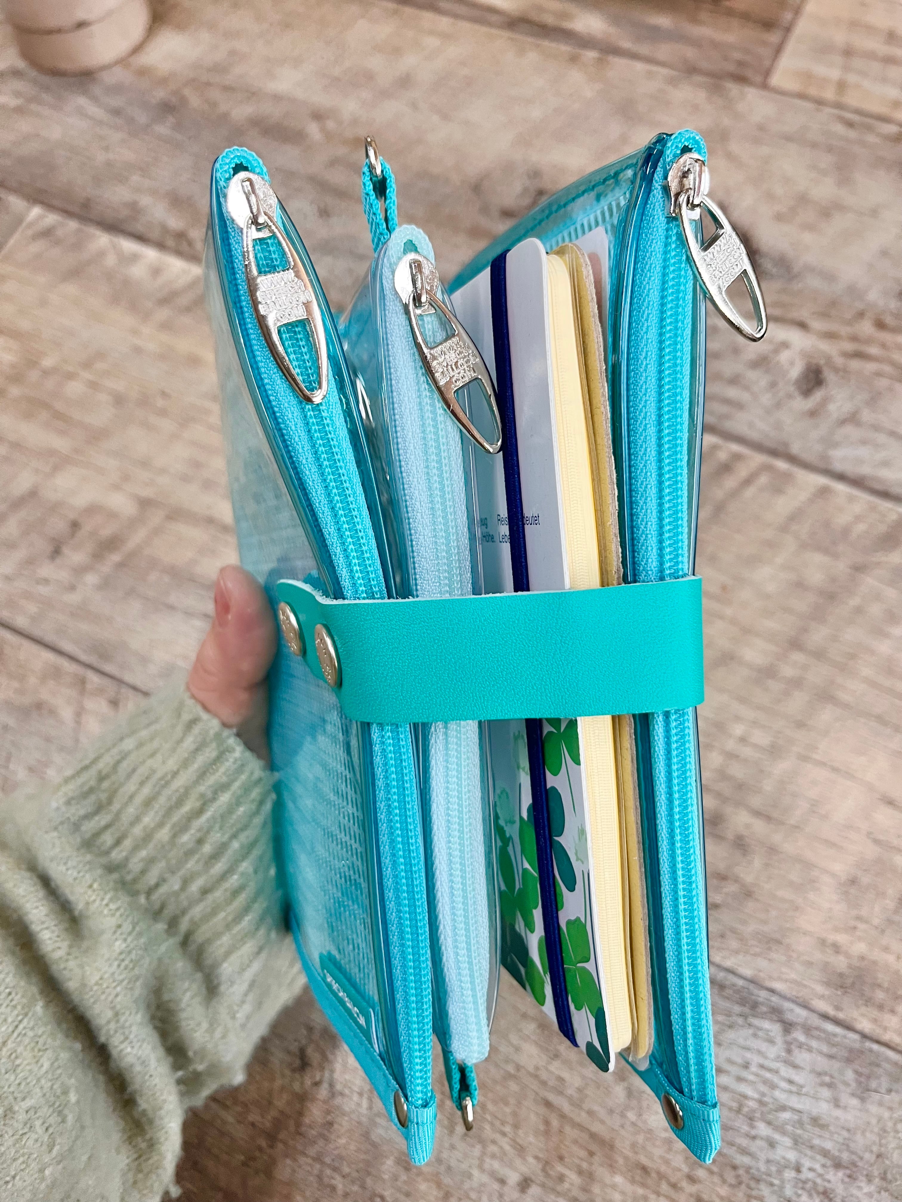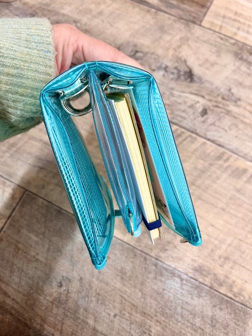 【受注商品のため、2週間ほどお時間いただきます】 スピーチバルーンの【ダブル】カラードバインダーR! ソーダーブルーのミニ6穴バインダー ~写真の仕様~ ・19mm+15mm ・限定革手紐エメラルド 13cm+ホック ・GRネーム ・センターファスナーをシルバーブルー ミニ6穴だと入る枚数も限られてきます。 そこで(o^^o) バインダーを2本使ったダブルバインダーの登場‼️ 真ん中はクリアポーチでどっちから見ても見えますよ(^O^) オリジナルのノートが作れるのがバインダーのいいところ。 マンスリー、ウィークリー、ダイアリー、カラーインクカードをいれたり。 マスキングやシールを使って手帳タイムが楽しいですね。 スピーチバルーンのダブルバインダーは、バインダー機能だけでなく、背表紙、 中表紙共にファスナーが付いた3つポケットつき! さぁ、あなたならどうする?あなた色を足してオリジナルバインダーを作ろう。 ■ この手帳の魅力ポイント ・両サイドがファスナーポケット。ペンや付箋もすっきり収納 ・透明×メッシュ素材で中身が見える!“見せる収納”にぴったり ・メッシュは取り外し可能 → 缶バッジやアクキーも自由にレイアウトOK ・横マチつき&縫い代なし設計で厚みがあっても形が崩れません ・写真やノート、推しグッズを入れて自分だけの空間をつくれます。 --------------【 カスタムオプション(有料) 】------------------------------- ・種類(ファスナーカラーの変更)無料 ┗ ・全体をエメラルドでつくる ・本体はエメラルド+センターの仕切りポーチは別のファスナーカラーで作る。 【仕切りポーチ(センターファスナー)を変更されたい方へ】 通常は、掲載されている基本色(MOMOピンク)からお届けしますが 「仕切りポーチは別色」をご選択いただいた方は、 ファスナー色写真に記載されている“正式な色名”を正確に『備考欄』にご記入ください。 例:「赤ワイン」「ターコイズ」など ※「赤」「青」などの表記のない名前はご遠慮ください。 色が合うかどうかはチャットで選んだファスナーを写真にとって送りますので 一緒に確認しながら決めていくといいと思います。 ・バインダーのサイズを変更⚠️バイブルはつきません! ┗ M6 内径19mm 両方 M5とM6(15mm)をそれぞれ使用 M5とM6(19mm)をそれぞれ使用 左右同じサイズか、違うサイズか。例)右:M6 左:5穴 ・革紐の長さ変更 ┗ 10cm以外の長さ ・13cm ・13cm+ 途中にホックをもう1つ(中身が少ないとき、ベルトを短く留められます) 沢山になるとわかっている方は13cmがオススメですね! ・ネームタグの種類変更 ┗ グリーン以外のデザインをご希望の場合 ・チャコール 背に挟んだ左下 ・レッド ホックの下 ・グリーン織り ホックの下 ・クリア ハート 背に挟んだ左下 ・クリア ベティーネーム 背に挟んだ左下 ・肩紐を付ける ┗ 肩紐の種類を選んでください。選ばないと付属していません。 ・Dカンを付けないと肩からぶら下げて使う仕様にはなりません!! ┗ 中仕切りのポケットの脇からDカンを出すか選べます。 センターのポケットにDカンをつけてみよう。 ・左にDカンをつける(アクキーをつけたり) ・両サイドにつける(肩紐をつけてポシェットのように使ってみる) 仕様 : ミニ6穴、M5バインダーを2本 縦170mm X 横110mmX 幅58mm わからないことがあれば、ここのチャットやInstagramのDMで質問してくださいね!! ファスナーの色も変更できますよ。言ってください。 #スピバルのバインダー 使い分けたい!推しカラーで作りたい!