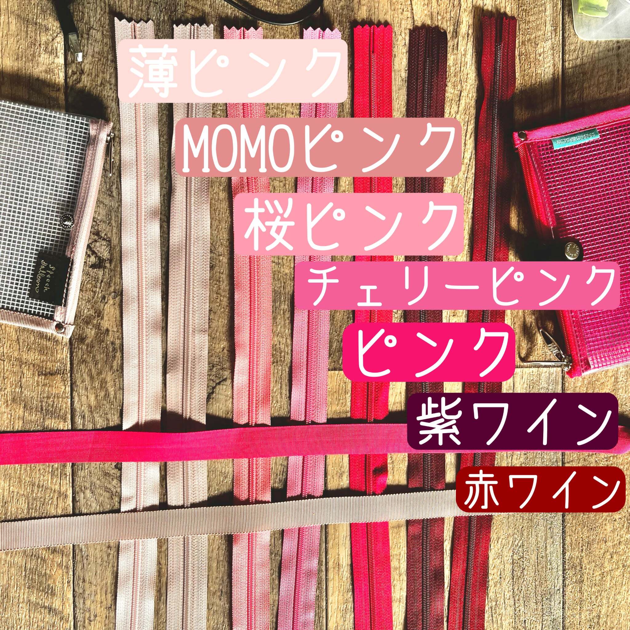 チャットで写真を送りながら、リボンに合わせてファスナーの色も決めていきます。
