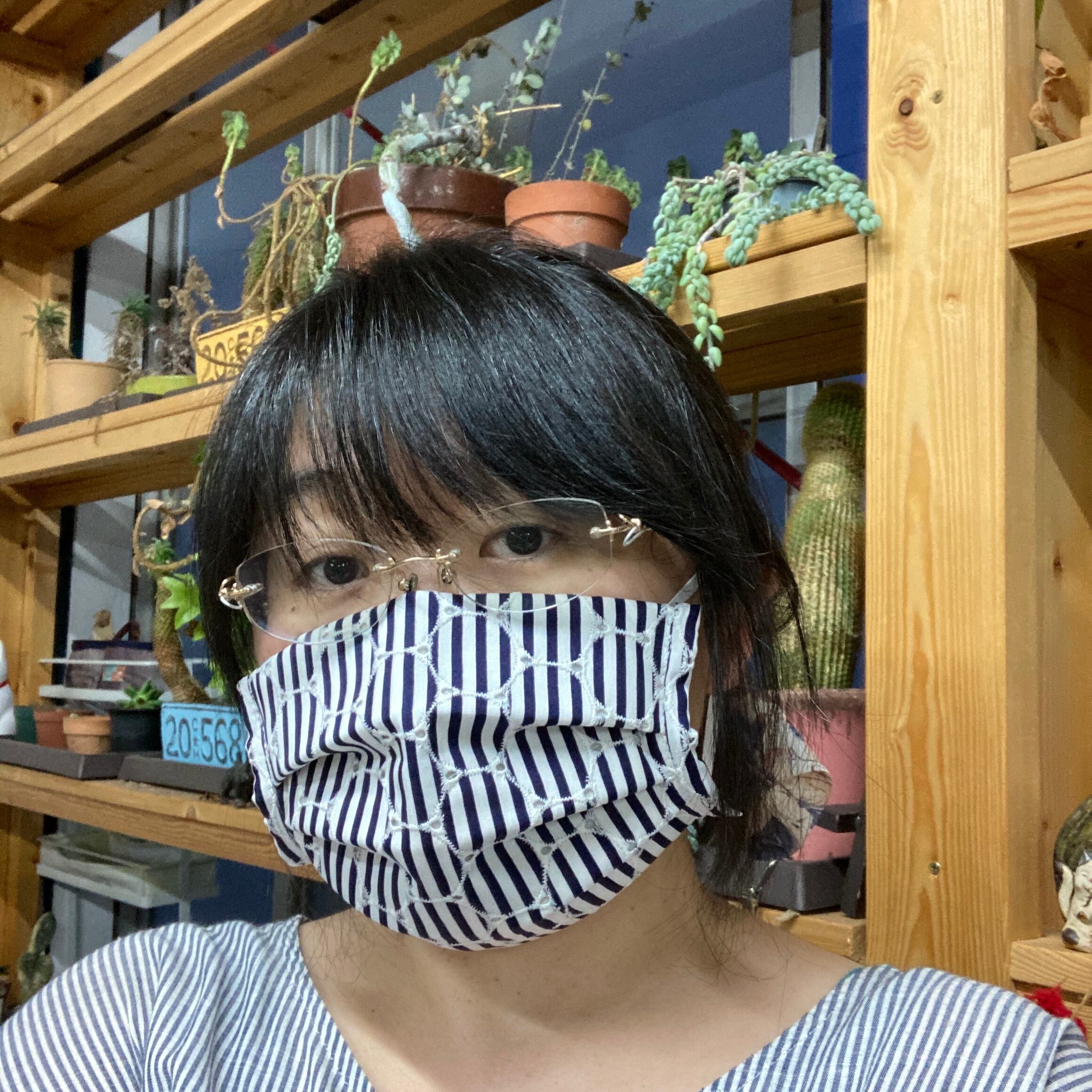 布マスク 刺繍ストライプ 抗菌綿オックス