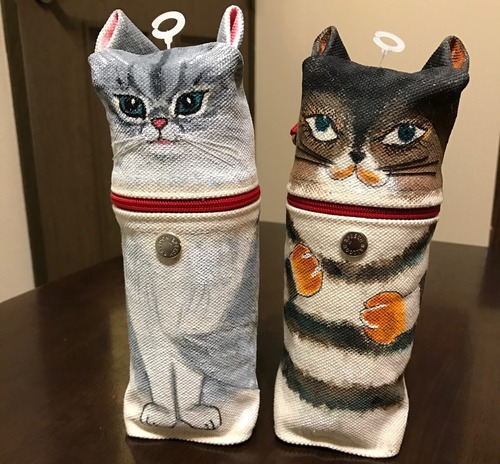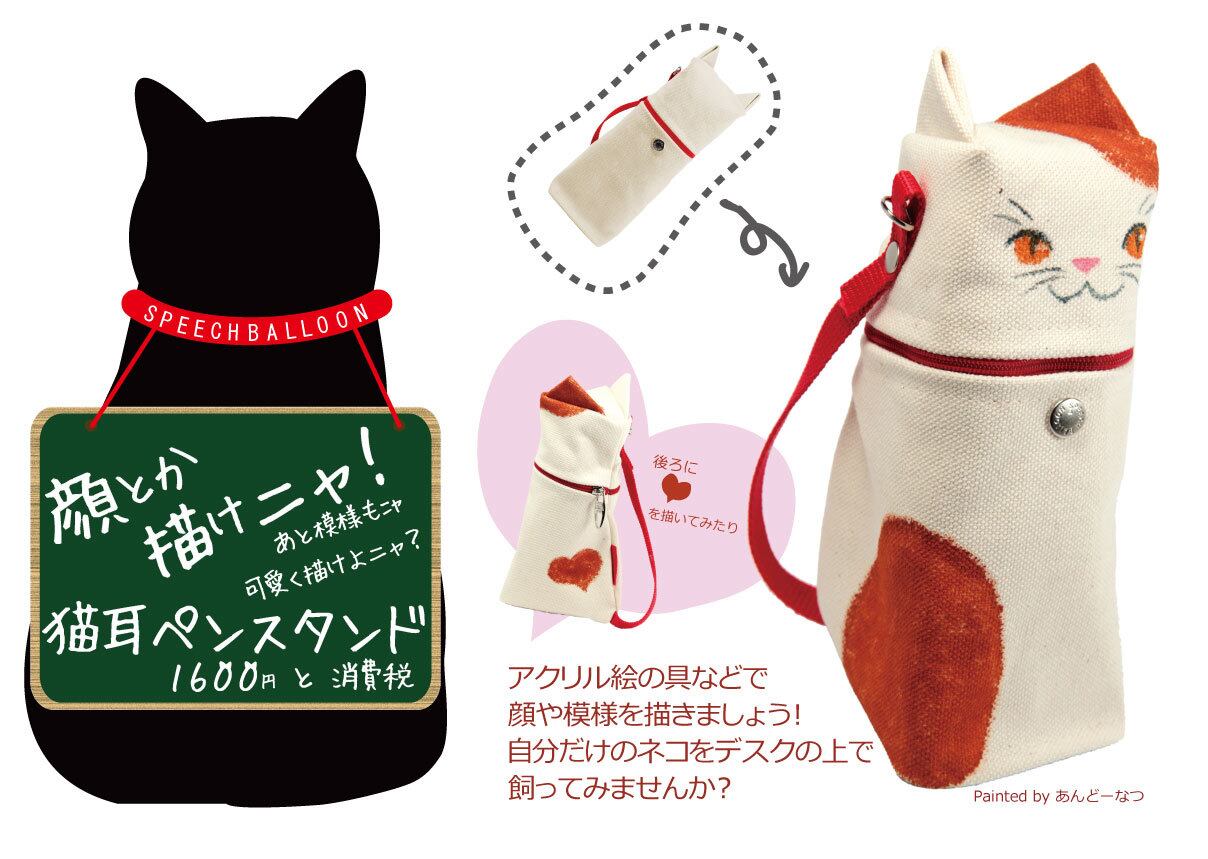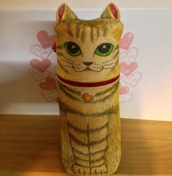 ブルーやピンクの耳の三毛猫ちゃん。 アクリル絵の具や、色鉛筆で色を塗ることも出来ます。 肉球も好きな所に描けるようにこの子たちには肉球プリントがしてありません。 貴方のオリジナル猫ちゃんを描いてみてはいかが? ペンを入れてもいいけど、アメを入れたりチョコを入れたり。 ちゅ~るを入れてもいいですよね。 13本から1cmくらいのペンなら19本のペンが入ります。 中身がたくさん入っていれば、猫は満足して立ってますが、本数が少ないとお腹を空かせて すぐに横になってしまいます。 横になる時はチラッと肉球を見せてごめんにゃ〜。 猫ですから気分屋です。 500mlのペットボトルは入りませんが280mlなら入ります。 他の色が気になる人はHPのカタログを見てね!! http://www.speechballoon.com/ 【サイズ】 耳先まで19cmx6.5cmx奥行き10cm ペンが入る長さ18cm 【素材】 帆布:綿