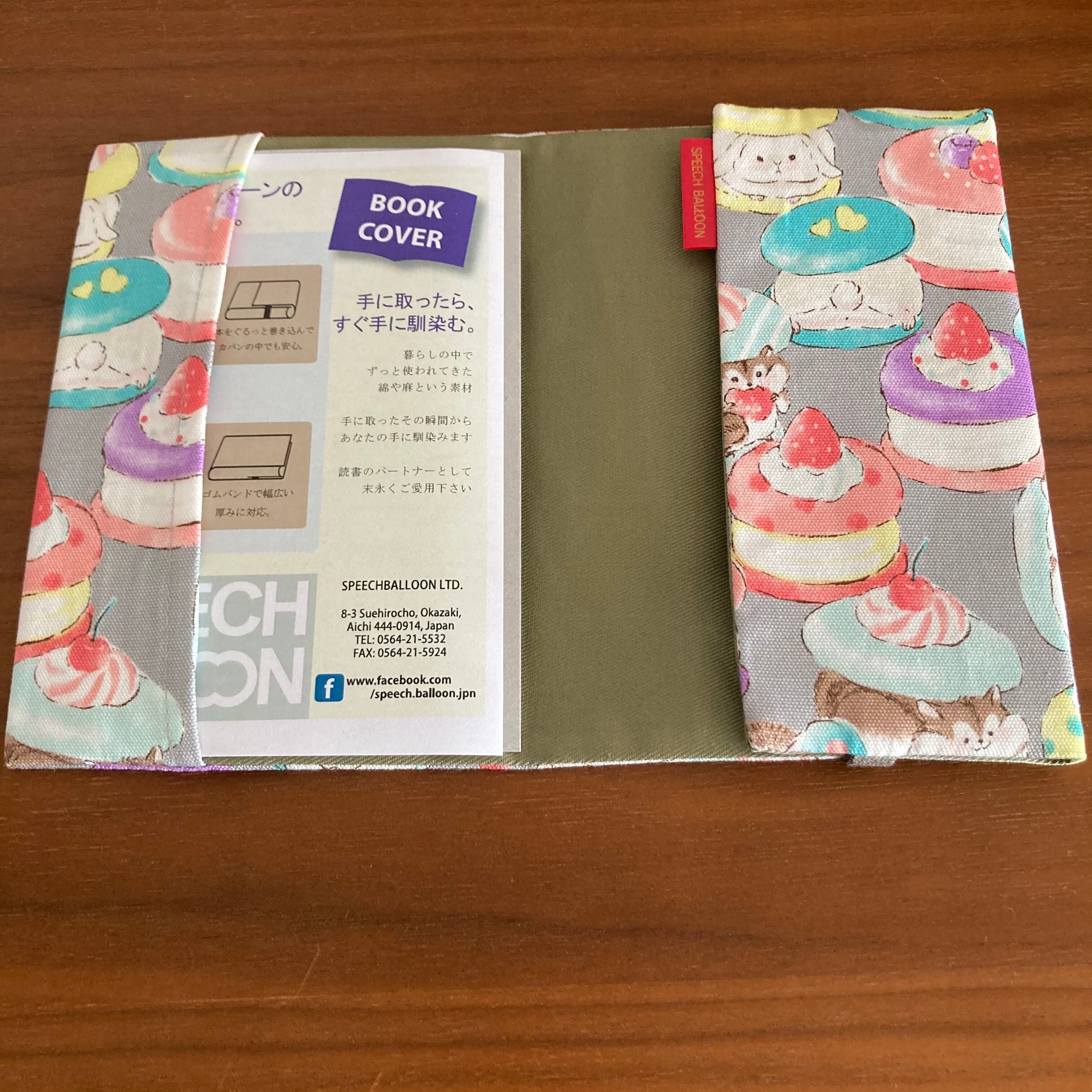 もふもふマカロン柄のブックカバー!心も弾む楽しい読書タイムをスピーチバルーンのブックカバーで。文庫サイズ 3センチの厚みだって楽々カバーできちゃう