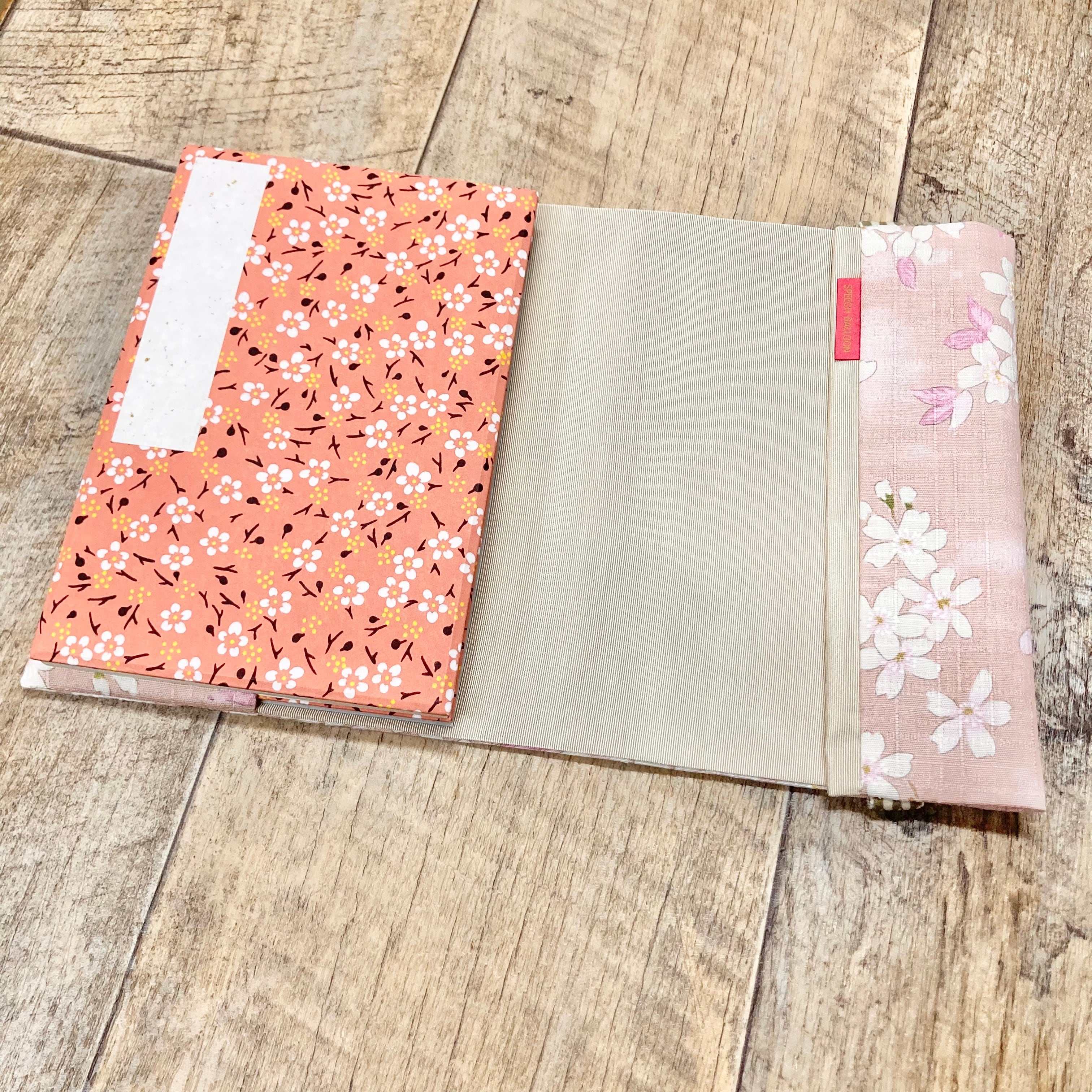 スピーチバルーンの御朱印帳包み 御朱印帳カバー 綺麗な桜柄はいかがです? #スピバルの御朱印カバー 御朱印帳をきんちゃく袋などへ入れるのではなく、包んでみませんか? 普段は1冊包み。でも、スリーブを反対にも作れば2冊だって閉じれちゃう! 鞄の中で御朱印帳が2冊ゴロゴロ、それを1枚の生地で包んで1冊に! 御朱印帳にはいろんなサイズがあることをご存じですか? こちらの商品はB6サイズ、大きいサイズの御朱印帳(120x180)を包みます。 コミックB6判サイズのカバーにもなります。 表地:綿 裏地 シャンタン ※御朱印帳はセットではありません。 縦18cm × 横12cm made in OKAZAKI