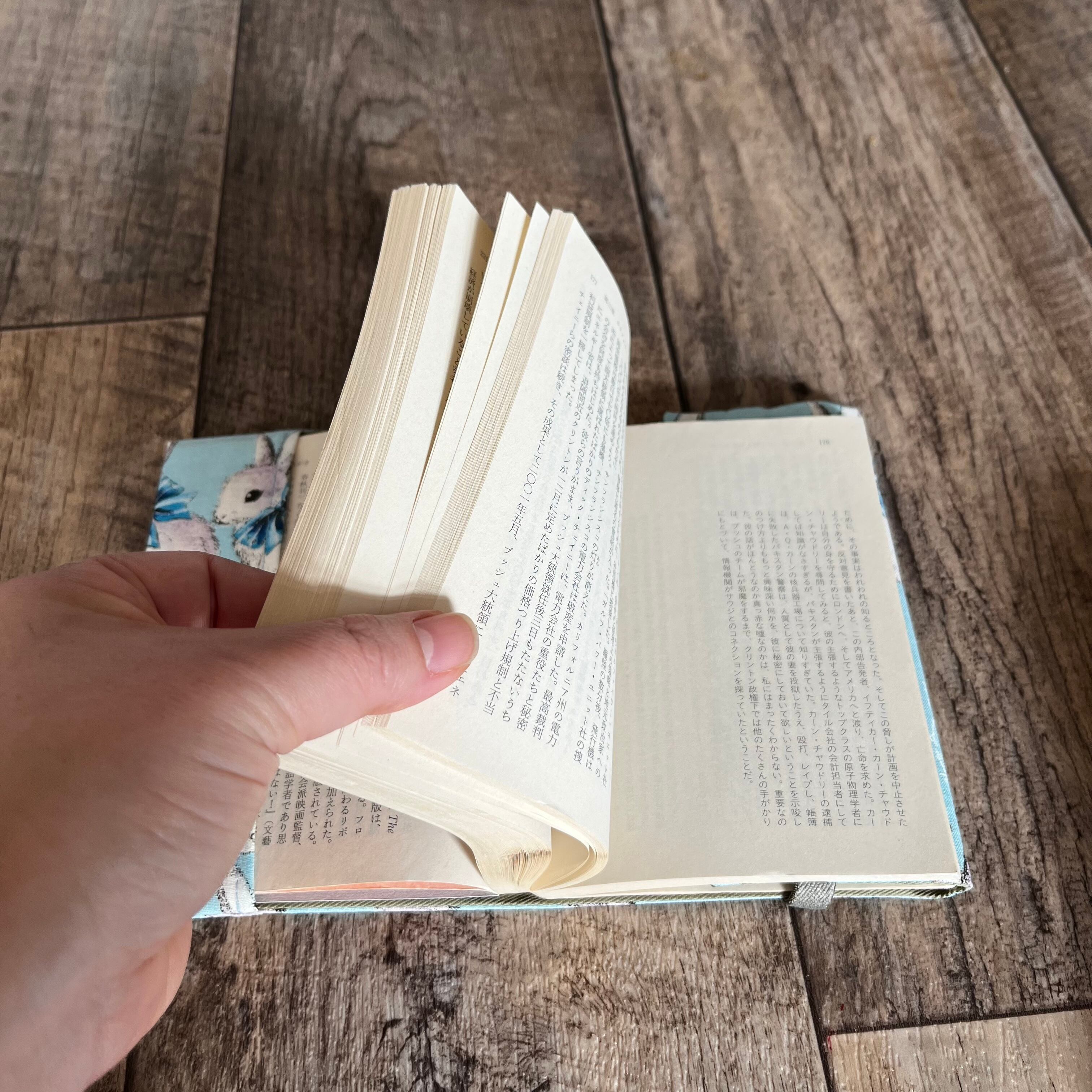 来年2023年はうさぎ年ですね! 読書、ブックカバー好きとしては是非とも うさぎ柄を持ちたい所♪ #スピバルのブックカバー 人気の桜柄と一緒のうさぎちゃんはいかがですか? 可愛いリボンをしたうさぎが来年のあなたの読書時間を楽しくしてくれますよ⁽⁽٩(๑˃̶͈̀ ᗨ ˂̶͈́)۶⁾⁾ 可愛いは正義!! 持つだけでやる気も癒やしもゲットできちゃう優れもの。 やっぱり1つは持たなきゃね(-ω☆)キラリ 布が持つ力。 それは布の温かみが心をゆったりとさせる力だどおもいます。 そして、お気に入りのカバーを着けることで、その本へしっかり浸ることができます。 本を読む時間。 それは気持ちをリラックスして、大好きな音楽に飲み物を用意して、 もしかしたらおやつも❣️楽しい時間ですね。 紙を直接触るのも寒くなるこの時期、布の温かみを感じる本は指先の冷えにも優しいですよ。 読んでいる心も温かくなります( ´ ▽ ` ) さぁ、貴方だけのための上映会の始まり始まり〜♪ 文庫サイズは3センチの厚みだって楽々カバーします。 ※商品は注文が来てから作ることがありますので10日くらい届くまでみてくださいませ。 -------------------------------------------------------------------------------- 【ブックカバーの仕様について】 ①左側にポケットがあり、本の背表紙を差し込みます。 ②右側の生地を折り曲げ、ゴムを後ろに回してポケットを作ります。 ③右側にできたポケットに本の表紙を差し込みポケットのサイズを調整します ④途中まで読んだら、読み終えたところまでをポケットへしまいます。 ⑤後ろに回したゴムを表に回せば全体をホールド。読みたいときは、ゴムをまた後ろへ回します。 裏地は、その時々で織りと色が変わりますが綿を使用しています。 --------------------《送料について よく読んでくださいね m(_ _)m 》---------------------------- 【後払い+スマートレター】を選ばれましたら注文自体をキャンセル扱いする事になります。ご注意ください。 【後払い不可スマートレター】 を選ばれる際は、コンビニ決済など先に済ませる決済方法を選んで下さいませ。 決済方法で後払いを選択しても郵送方法として選ぶ事ができてしまいますが、ご注文頂いてもスマートレターは荷物がお客様のお手元に届いたかどうか『確認が取れない郵送方法』なので商品代金を請求する事が出来無いため、発送が出来ません。 請求書のお届けは、荷物到着日から換算して、最大で8日ほどでお手元に届きます。 よろしくお願いします。 made in JAPAN