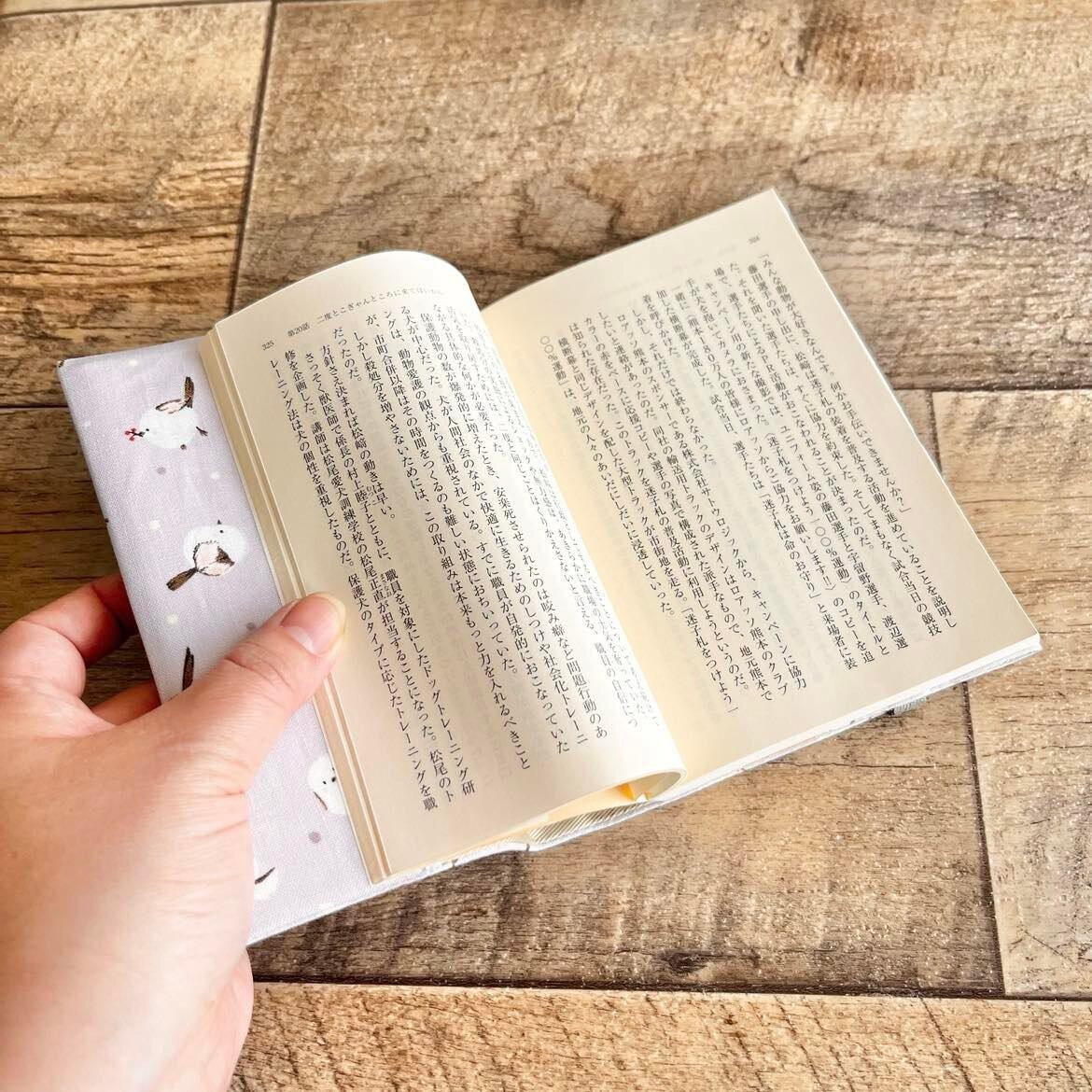 みんなが大好きシマエナガ。心を弾ませる楽しい読書タイムをスピーチバルーンのブックカバーで過ごしませんか?文庫サイズ 3センチの厚みだって楽々カバーできちゃう