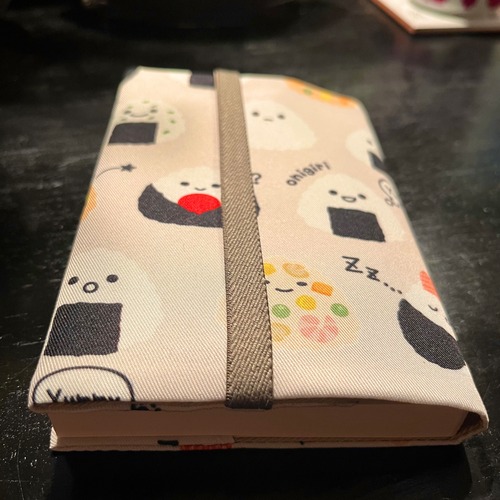 笑顔が可愛いおにぎり柄♪ きっと、読書時間をホッコリさせてくれますよ❤ #スピバルのブックカバー 可愛いは正義!! 持つだけでやる気も癒やしもゲットできちゃう優れもの。 やっぱり1つは持たなきゃね(-ω☆)キラリ 布が持つ力。それは布の温かみが心をゆったりとさせる力だどおもいます。 そして、お気に入りのカバーを着けることで、その本へしっかり浸ることができます。 メルヘンチックなウサギ柄、北欧風のジオメトリック柄など、可愛らしいデザインが勢ぞろい!心を弾ませる楽しい読書タイムをスピーチバルーンのブックカバーをつけてみましょう。 文庫サイズにぴったりなサイズ感で、簡単にカバーすることができます。 さらに、3.5cmまでの厚みの本にも対応しているので、太めの本も楽々カバー。 本のカバーは、見た目を華やかにしてくれるだけでなく、傷や汚れからも大切な本を守ってくれます。ぜひご自分用にはもちろん、プレゼントにもおすすめです。 お気に入りの本を包んだら、まるで魔法の本になったかのような気分になれますよ。 それは気持ちをリラックスして、大好きな音楽に飲み物を用意して、 もしかしたらおやつも❣️楽しい時間の始まりです。 さぁ、貴方だけのための上映会の始まり始まり〜♪ ※商品は注文が来てから作ることがありますので10日くらい届くまでみてくださいませ。 -------------------------------------------------------------------------------- 【ブックカバーの仕様について】 ①左側にポケットがあり、本の背表紙を差し込みます。 ②右側の生地を折り曲げ、ゴムを後ろに回してポケットを作ります。 ③右側にできたポケットに本の表紙を差し込みポケットのサイズを調整します ④途中まで読んだら、読み終えたところまでをポケットへしまいます。 ⑤後ろに回したゴムを表に回せば全体をホールド。読みたいときは、ゴムをまた後ろへ回します。 裏地は、その時々で織りと色が変わりますが綿を使用しています。 よろしくお願いします。 made in JAPAN