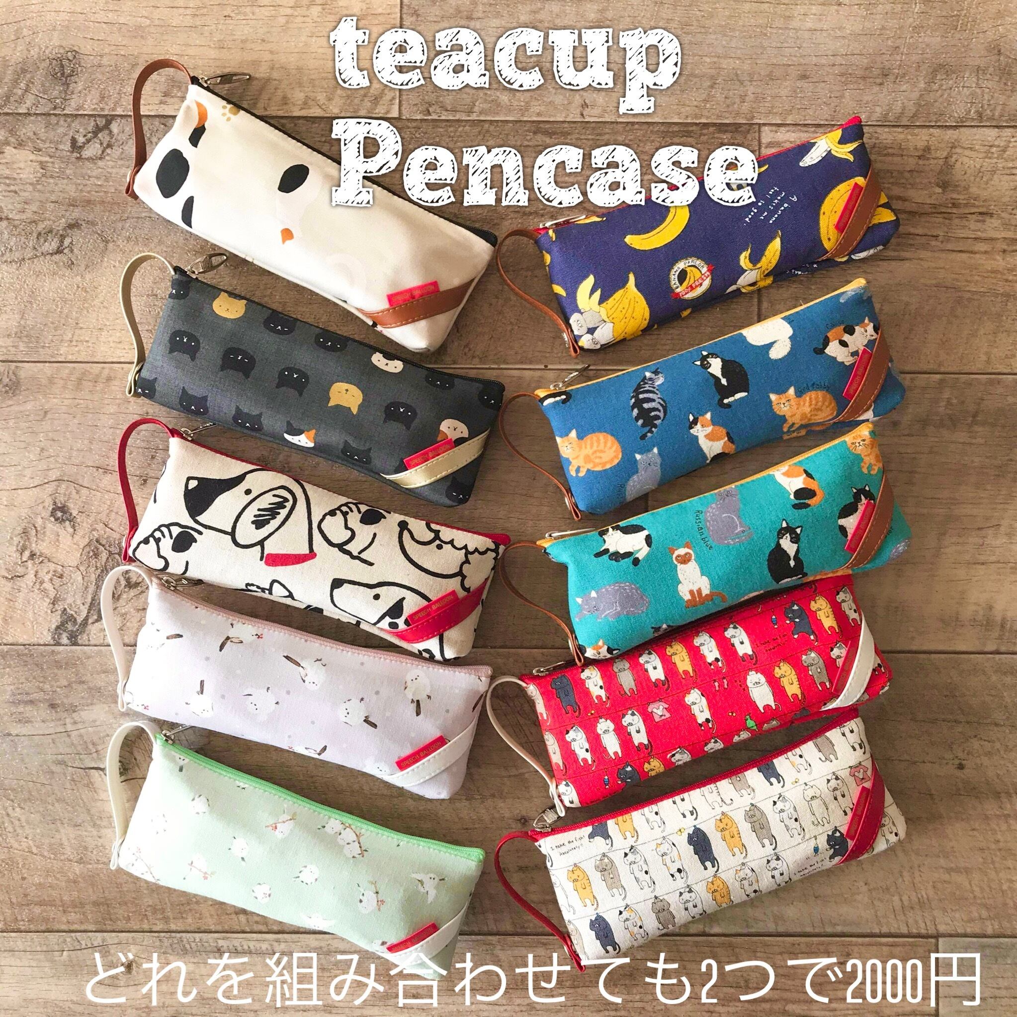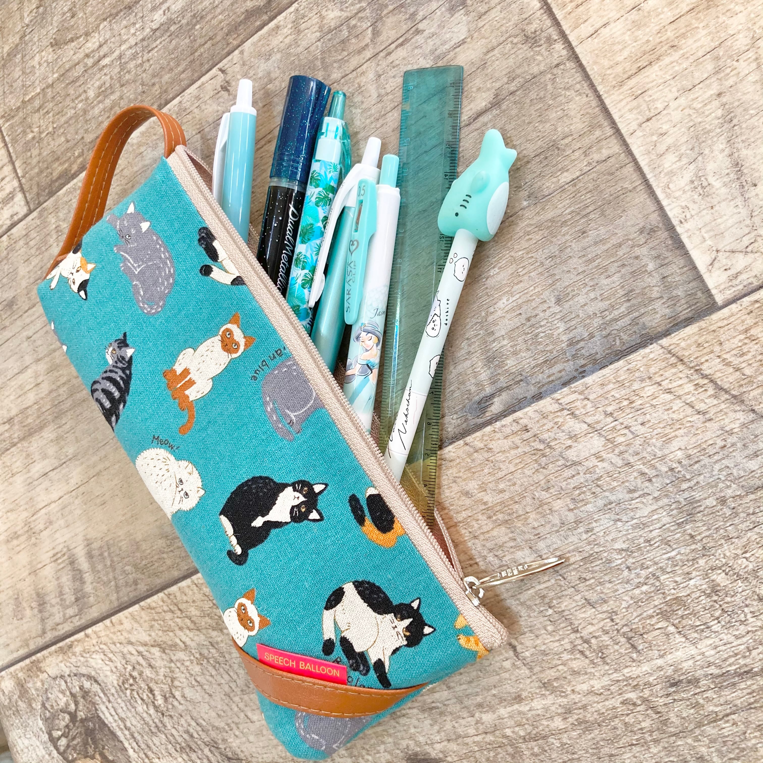 スピーチバルーン イチオシのティーカップペンケース❣️ 大人になっても可愛いモノは持ちたい‼️ 可愛いは正義⁽⁽٩(๑˃̶͈̀ ᗨ ˂̶͈́)۶⁾⁾ 心ウキウキ〜♪ 猫柄のペンケースにお気に入りのペン達。 早く使いたい!!! ペンケースの横からでている取っ手の端をホックで留めることで、きれいなアーチを描く "ティーカップペンケース" まるで紅茶を飲むときに使う Teacupみたいなデザインでしょ! プリント表生地の柔らかい質感とは違い、内側にはしっかりした丈夫な帆布が使われています。 中にはペンが10本入り、取っ手が出ている脇の部分は前後ろの生地がつながっているため、ファスナーでグルッと縫われています。スタッフの中ではループデザインと呼んでいます。 だからティーカップペンケースのファスナーを開けた時 ”内側はスッキリな仕上がり” 縫い代がないから見た目通り一番端まで物が入ります! 手紐についたホックを取り外せば、カバンの手さげに付けることもできるし、 取り出す時もティーカップペンケースの取っ手を上にしてしまっておけば取り出すのも簡単〜 女子力アップ間違い無し! ペンケースとして使ってもいいし、ティータイムのおやつを入れておくポーチとして使うのもいいですね。 表地:綿 裏地:綿 縦7.5cm × 横20cm × マチ1cm made in OKAZAKI