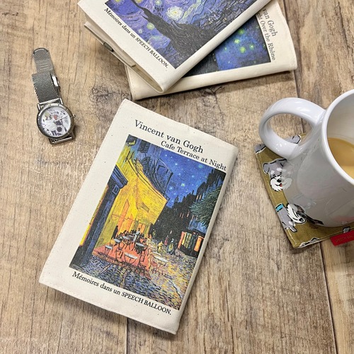 フィンセント・ファン・ゴッホ Vincent van Goghの文庫サイズのブックカバー 受注生産のため10日ほどお時間を頂きます。 1853年生まれ。モネの12歳上となるゴッホ。 もし、フランスで生まれていて、パリにいたら、家族とうまく行っていたら、恋人ともうまく行って。。また違う人生が待っていたんじゃないだろうか。 日本好きのモネとも面倒くさい性格のゴッホでも気が合うところがあったのではとも思う。 1888年、ゴッホはアルル滞在するようになり夜景をいくつか描いています。 今回はその夜景”ローヌ川の星月夜”を追加することにしました。 当時ゴッホが住んでいた黄色い家はラマティン広場にあり、そこから歩いて2~3分の場所にその場所はありました。 モネの睡蓮が何枚もあるように、ゴッホも昼間ではなく夜に描いているようです。 夜景をスケッチし、ガス灯の下で描いています。 ガス灯の黄色が水面に反射している様を小豆色の金から青銅色までを使って表しています。 この頃のゴッホはまだ精神的に参ってはいない時期で幸せなカップルを描く余裕があった夜景と言えるでしょう。 ゴッホは面倒くさい思い込みの激しい人だったかもしれませんが、ヒマワリの力強さは今の私達を引き寄せるます。この時のゴッホが描いた絵は、どれも心が落ち着いていて、 見ているこちらも気持ちがいい。 ----------------------------------------------------------------------------- 【ブックカバーの仕様について:右開き仕様となっております】 文庫、新書、B6,四六 ①右側にポケットがあり、本の表紙を差し込みます。 ②左側の生地を折り、ゴムを裏に回してポケットを作ります。 ③左側にできたポケットに本の裏表紙を差し込み、ポケットのサイズを本の厚みに調整します ④まだ読んでいないページをポケットへしまうことも出来ます。 ⑤後ろに回したゴムを表に回せば全体をホールド。読みたいときは、ゴムをまた後ろへ回します。 右のポケットへ年金手帳やお薬手帳を差し込めば手帳カバーにだってなっちゃう!! ※A5サイズの本は左開きが多いため、指定がないときは左開きでお作りします。 ポケットが左側に作られていて調節を右でします。 ※新書、B6,四六サイズはご指定がない場合は右開きでお作りいたします。 裏地は、その時々で織りと色が変わりますが綿を使用しています。 ----------------------------------------------------------------------- 《送料について よく読んでくださいね m(_ _)m 》 【後払い+スマートレター】を選ばれましたら注文自体をキャンセル扱いする事になります。ご注意ください。 【後払い不可スマートレター】 を選ばれる際は、コンビニ決済など先に済ませる決済方法を選んで下さいませ。 決済方法で後払いを選択しても郵送方法として選ぶ事ができてしまいますが、ご注文頂いてもスマートレターは荷物がお客様のお手元に届いたかどうか『確認が取れない郵送方法』なので商品代金を請求する事が出来無いため、発送が出来ません。 請求書のお届けは、荷物到着日から換算して、最大で8日ほどでお手元に届きます。 よろしくお願いします。 made in JAPAN 受注商品のため、お時間を10日ほどいただきます。 ご了承ください。