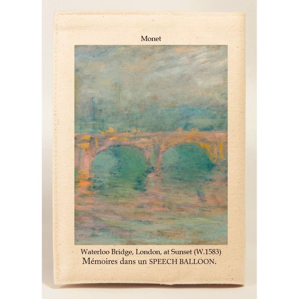 アートシリーズ Monet(モネ)のブックカバー Monet-WaterlooBdg.W.1569 ウォータールー橋、灰色の天候 Monet-WaterlooBdg.W.1564 ウォータールー橋、夕暮れ モネ展 Monet-WaterlooBdg.W.1583 ウォータールー橋、日没 モネ展 Monet-WaterlooBdg.W.1573 ウォータールー橋、靄の中の太陽の効果 1/28まで東京の”上野の森美術館”にて開催中 その後も”大阪中之島美術館”で2/10-5-6まで開催 モネだけで75点の作品展。見どころ満載ですね♪ 自分の見てきたモネの絵で一番気に入った絵はどれでした? その作品のグッズはありましたか? スピーチバルーンでは、その気に入られた絵を商品にします。 このサイトは文庫サイズのページですがオプションから、新書、四六、B6、A5と変更することが可能です。A5は、開きを右開き、左開きと選ぶ事も可能‼️ 他のアイテムでも製作可能です。 チャットへ質問してください。 (ペットボトルホルダー、ペンケース、メガネケースetc) モネといえば睡蓮ですよね!! 200枚も描いという睡蓮シリーズの最高傑作と名高い作品「睡蓮の池(1906年)」 モネは後世1883年からはジヴェルニーに自宅を構え、日本の「水の庭」の池とそこに生育する睡蓮をモチーフに描き始める。 様々な時間帯の睡蓮は200点を超えると言われている。 ----------------------------------------------------------------------------- 【ブックカバーの仕様について:右開き仕様となっております】 文庫、新書、B6,四六 ①右側にポケットがあり、本の表紙を差し込みます。 ②左側の生地を折り、ゴムを裏に回してポケットを作ります。 ③左側にできたポケットに本の裏表紙を差し込み、ポケットのサイズを本の厚みに調整します ④まだ読んでいないページをポケットへしまうことも出来ます。 ⑤後ろに回したゴムを表に回せば全体をホールド。読みたいときは、ゴムをまた後ろへ回します。 右のポケットへ年金手帳やお薬手帳を差し込めば手帳カバーにだってなっちゃう!! ※A5サイズの本は左開きが多いため、指定がないときは左開きでお作りします。 ポケットが左側に作られていて調節を右でします。 ※新書、B6,四六サイズはご指定がない場合は右開きでお作りいたします。 裏地は、その時々で織りと色が変わりますが綿を使用しています。 後払い:請求書のお届けは、荷物到着日から換算して、最大で8日ほどでお手元に届きます。 よろしくお願いします。 made in JAPAN 受注商品のため、お時間を10日ほどいただきます。 ご了承ください。 *ハヤカワ文庫トールサイズは入らないです。1つ1つ丁寧に手作業のため、稀に入るサイズが有ることもあります。