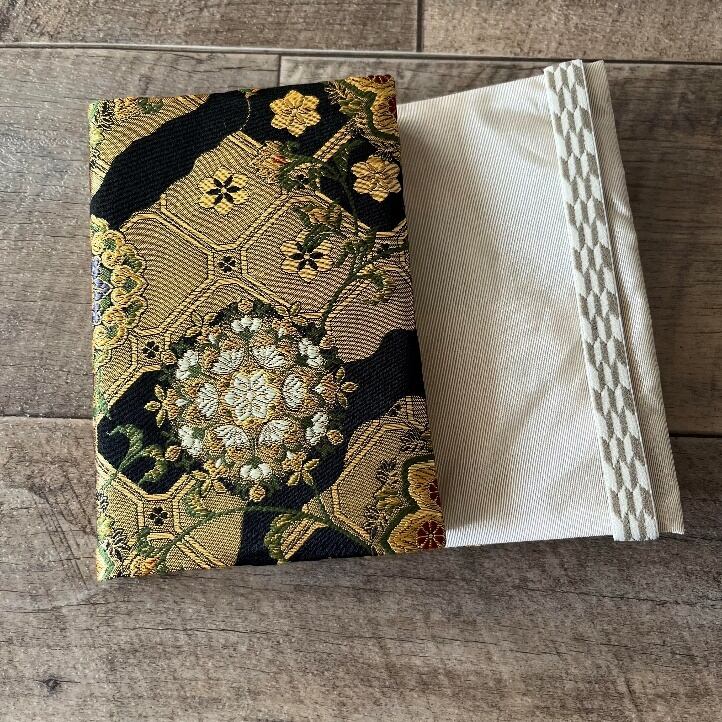 スピーチバルーンの御朱印帳包み:御朱印帳カバー 七丁・茶・3釜 雛人形を作られている人形師さんから買っている雛人形用の金襴生地で作ったカバーとなります。 今ではこの色数で織ることはできないという貴重な金襴生地を使用。他所で見つける事はまず無いでしょう‼️ 御朱印帳をきんちゃく袋などへ入れるのではなく、包んでみませんか? 普段は1冊包み。でも、スリーブを反対にも作れば2冊だって閉じれちゃう! 鞄の中で御朱印帳が2冊ゴロゴロ、それを1枚の生地で包んで1冊に! 御朱印帳にはいろんなサイズがあることをご存じですか? こちらの商品はB6サイズ、大きいサイズの御朱印帳(120x180)を包みます。 コミックB6判サイズのカバーにもなります。 表地:綿 裏地 シャンタン ※御朱印帳はセットではありません。 縦18cm × 横12cm made in OKAZAKI