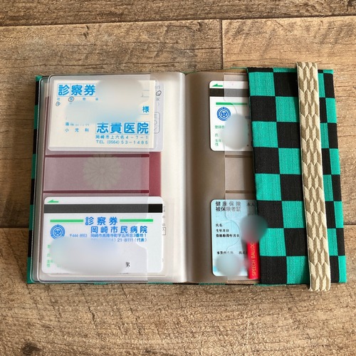 お薬手帳カバーになります。 ゴムでホールドするタイプ。 <収納できる数> お薬手帳×2冊 カード×6枚 コピーやプリンターのインクがクリアの生地に付着しにくい素材を使っています。 <中のカードケース入れ> 素材:軟質ポリ塩化ビニール ※お薬手帳は入っていません。 カードケース、布カバー共に日本製。1760